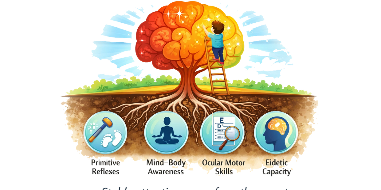 Almost all behavior challenges and learning struggles can be traced back to one or more of the four foundational systems - primitive reflexes, mind-body awareness, ocular motor skills, and eidetic capacity. These symptoms develop early, work together, and quietly support everything that comes later.